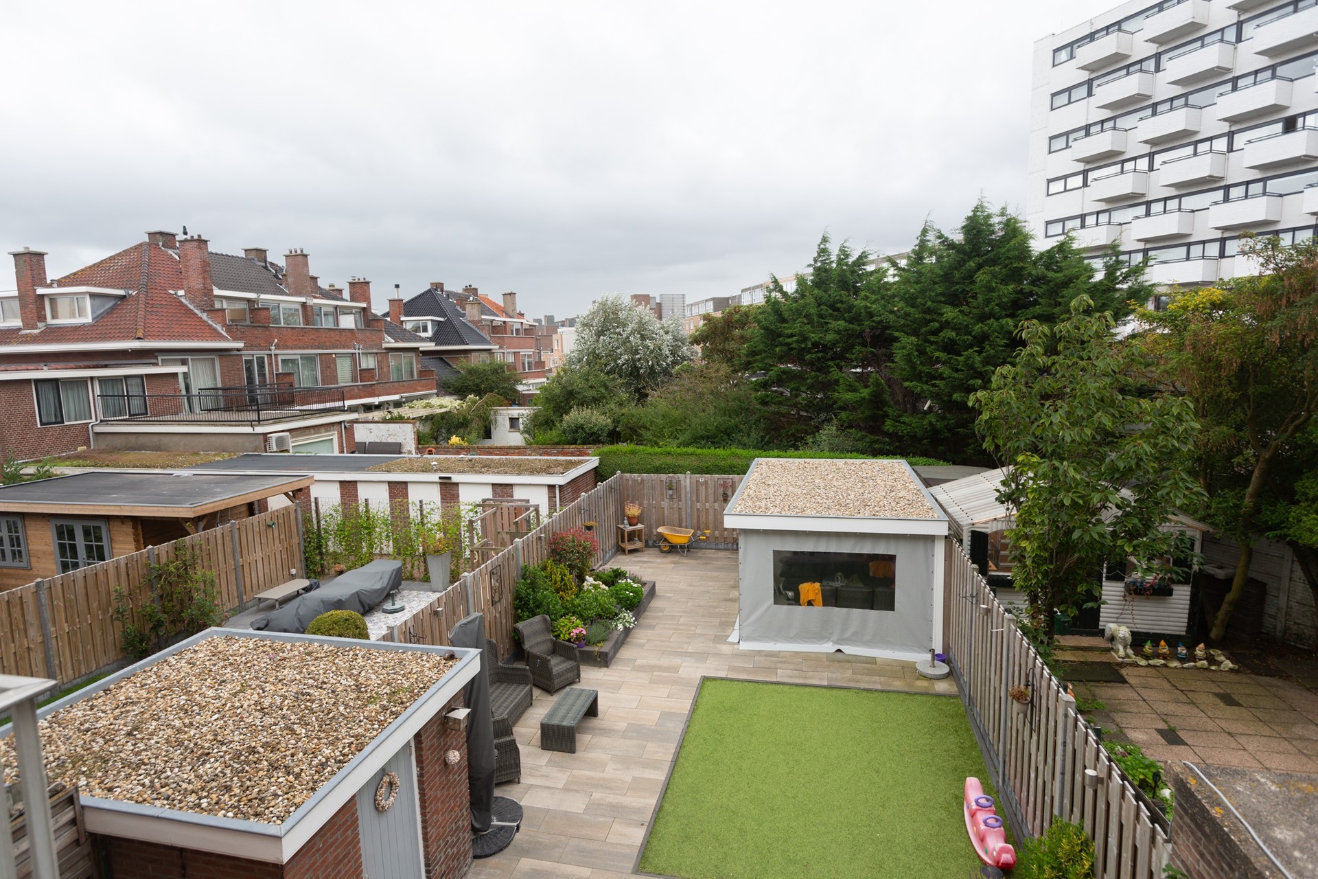 - Eigen achtergelegen fietsenberging op de begane grond;