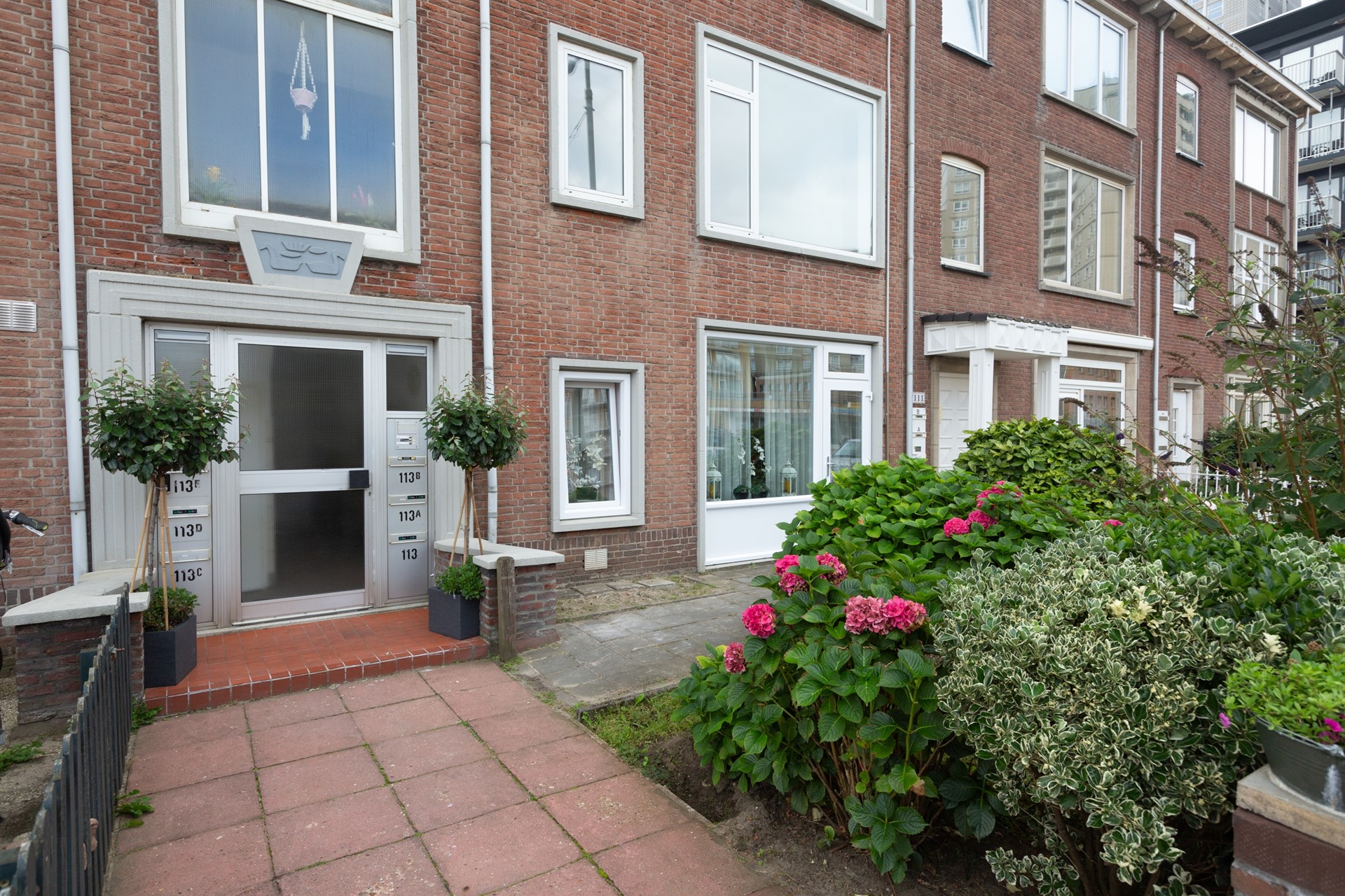 Indeling: Centraal gesloten portiek; trappenhuis naar de eerste verdieping. Eerste verdieping: Entree appartement; L-vormige hal met garderobe met zeer lichte en royale woon/-eetkamer met leuk zeezicht; separaat toilet met fonteintje; nieuwe badkamer met inloopdouche, ligbad, dubbele wastafel, spiegelkast en designradiator; ruime eetkeuken met bar, nieuwe inbouwapparatuur inclusief inductie koken met 'Bora afzuiging' en Miele koffiemachine, extra grote ijskast, genoeg werk- en opbergruimte; eerste ruime slaapkamer met deur naar achterbalkon (ZO), met balkonkast; wasmachine; tweede zeer ruime slaapkamer aan de achterzijde met openslaande deuren naar 2e achterbalkon (ZO); derde slaapkamer aan voorkant. De gehele woning is voorzien van een hoogwaardige nieuw laminaat vloer met extra vloerisolatie.