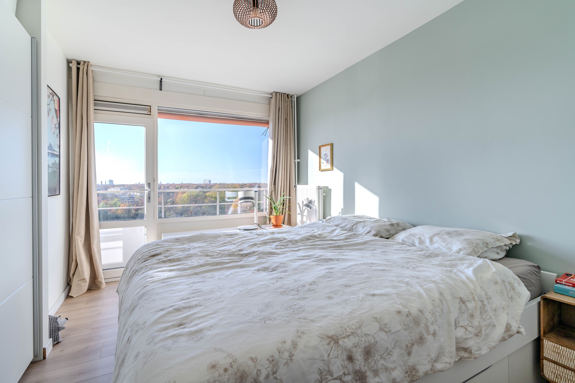 Prachtig appartement op de 10e woonlaag met fantastische vergezichten over de Haagse regio. Half open luxe keuken, 2 fijne balkons, 2 ruime slaapkamers en een heerlijk badkamer met whirlpool!