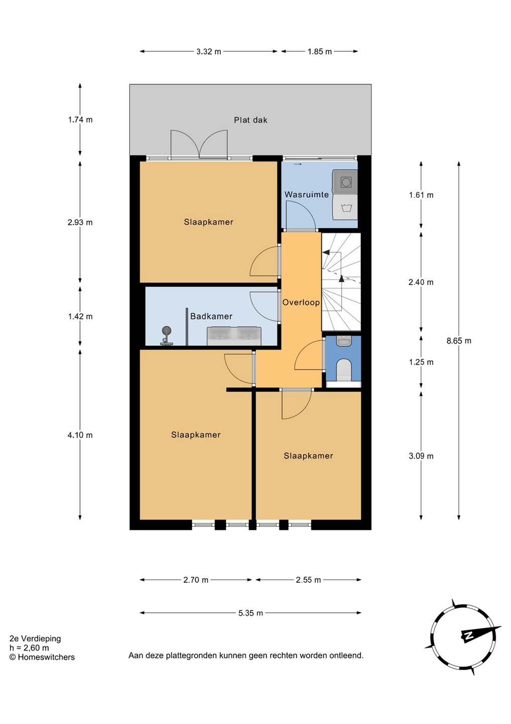 Bovenste verdieping, wederom drie slaapkamers. Hier zijn twee slaapkamers aan de voorzijde en een aan de achter zijde. Deze beschikt tevens over toegang naar een ruim terras aan de achter zijde. Naast de slaapkamers zijn er nog een badkamer, apart toilet en een aparte wasruimte met tevens de opstelplaats CV ketel (2025). Vanaf deze bovenste verdieping trap met groot daklicht naar het dakterras met een gaaf uitzicht over de omgeving.