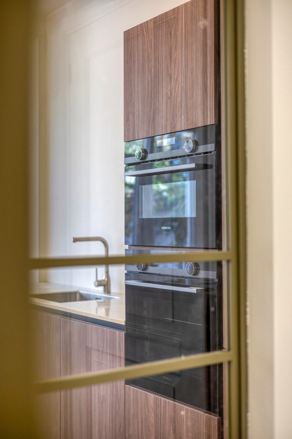 - Prachtige keuken walnoot met trend travertin aanrechtblad en A apparatuur waaronder Quooker.